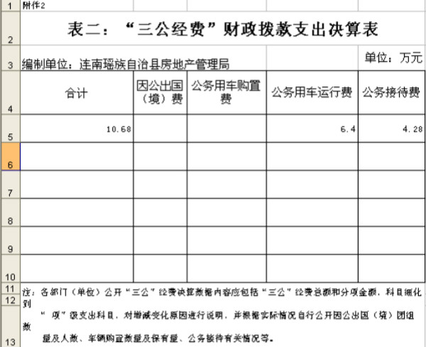 连南瑶族自治县房地产管理局“三公经费”财政拨款支出决算表